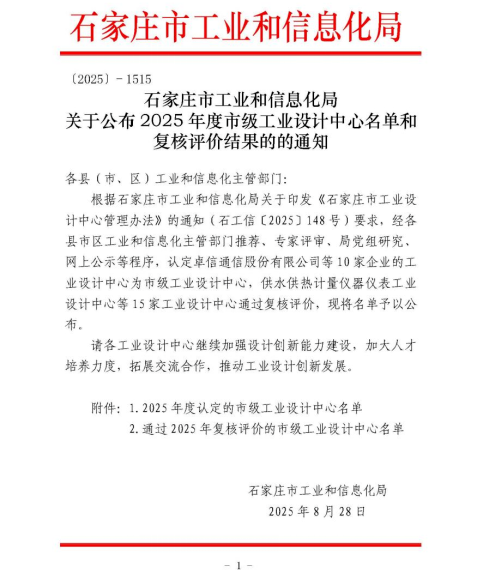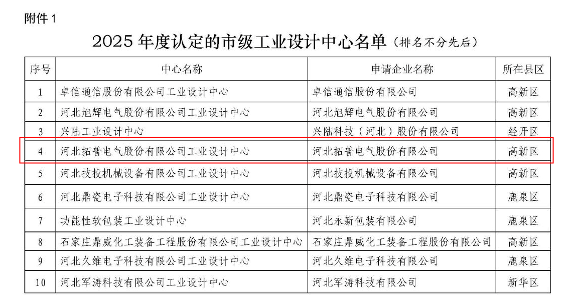喜報(bào)!河北拓普電氣榮獲“石家莊市級(jí)工業(yè)設(shè)計(jì)中心”稱號(hào)